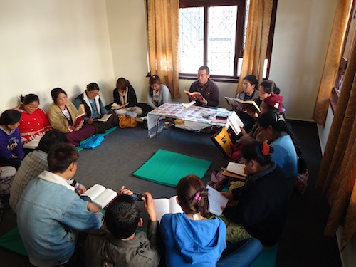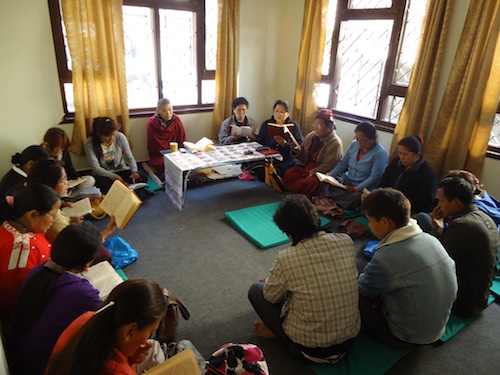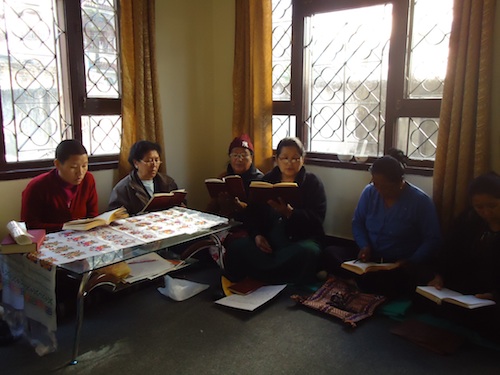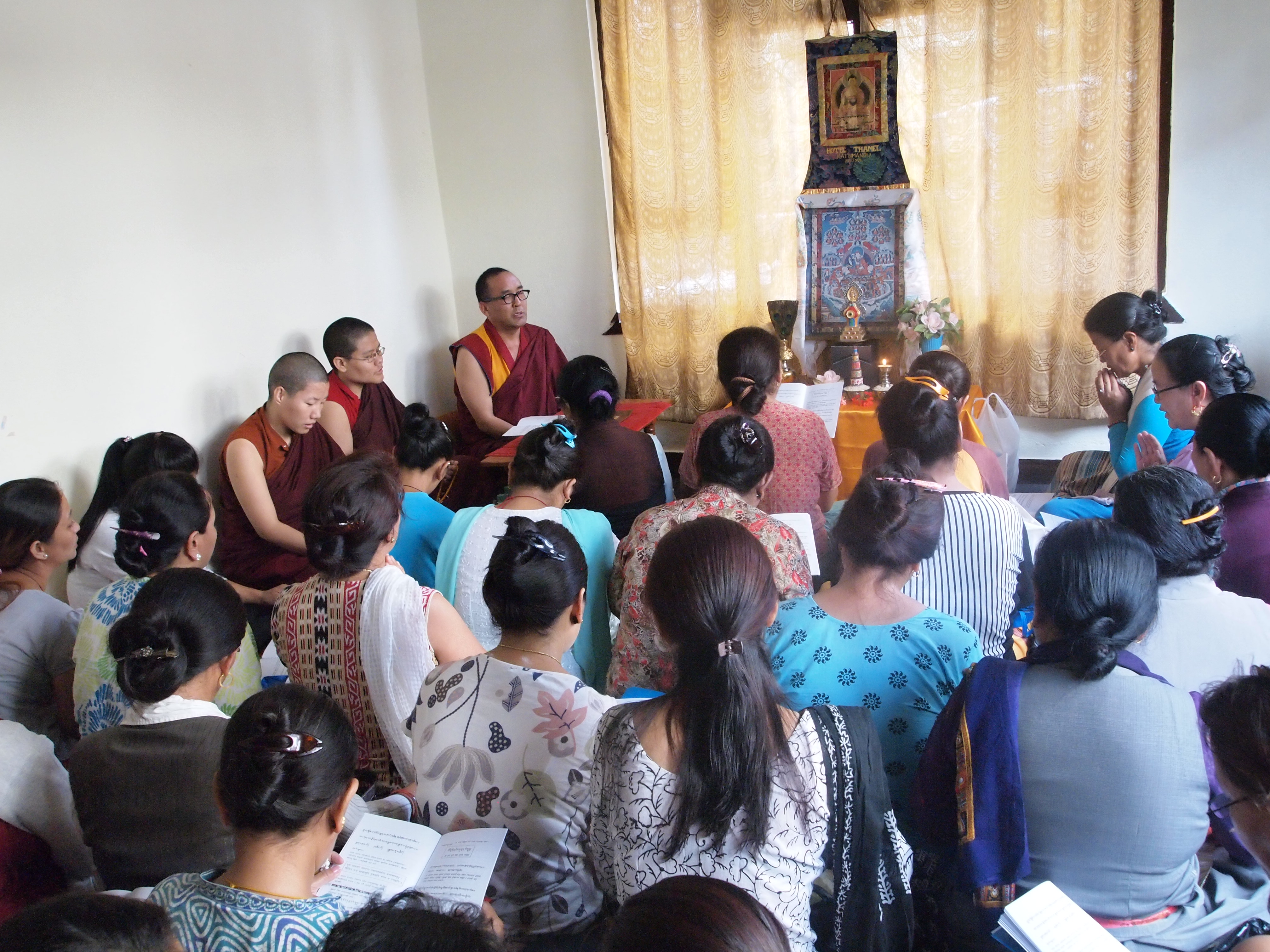 The teachings are available to all, without any discrimination on the basis of nationality, community, age, gender and so on. Each person, man or woman, lay or ordained, who wishes to study and practice the profound Dharma is welcome in our school. The teachings will be given in Tibetan, Nepali, English and so on; to facilitate this, classes in reading and writing Tibetan and in Tibetan grammar, will also be given, as well as English language classes.